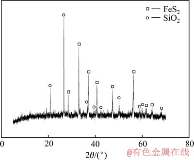为了进一步明确单质硫和黄铁矿对浸金的影响程度,采用20% NaOH(质量分数)溶液在温度为98 ℃、液固比为5:1和时间为6 h的条件下进行热碱脱硫,消除单质硫的影响,脱硫渣中的总硫含量为29.05%,脱硫率为60.65%,而浸锑渣中单质硫所占比率为56.97%(见表2),因此推断单质硫已完全反应。为了证明这一推断,对热碱脱硫渣进行XRD分析,结果如图3所示。