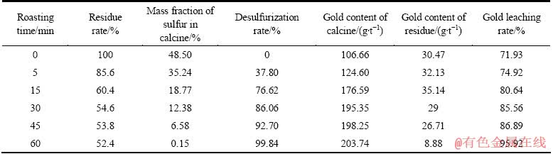 Table 5 Relationship between sulfur content of calcine and leaching rate of gold