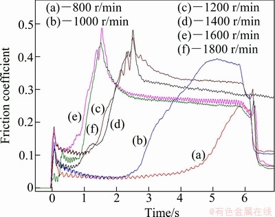 Fig. 6 Friction coefficient as function of time under different rotation speeds