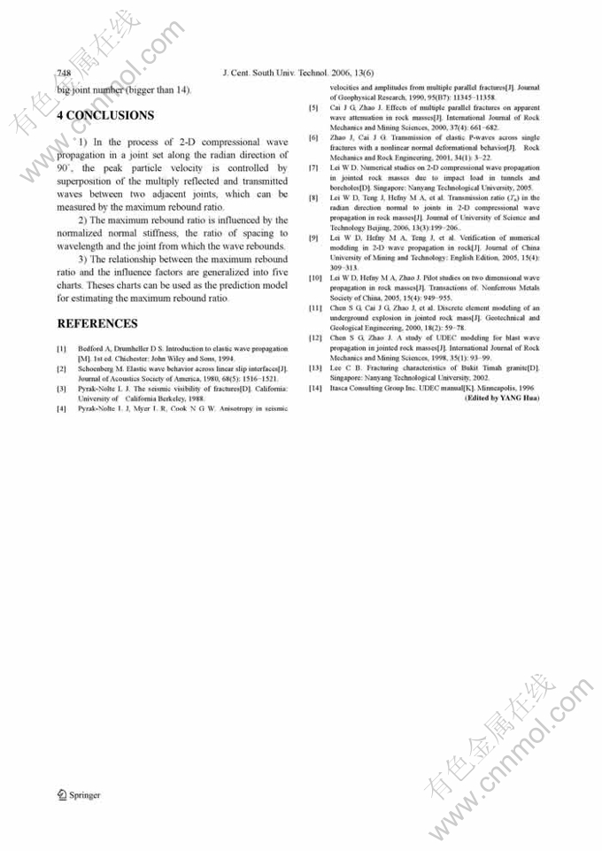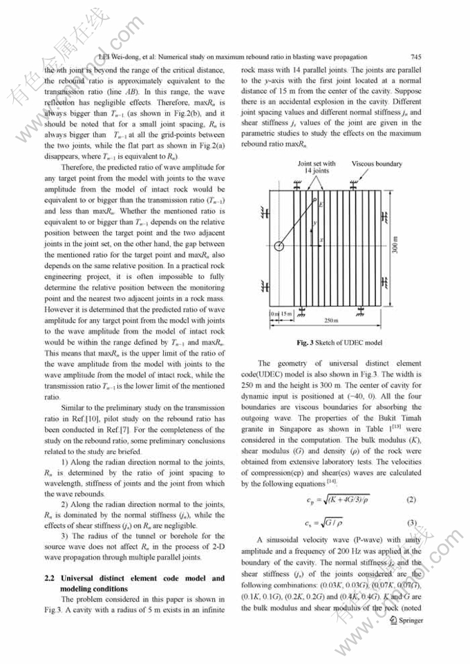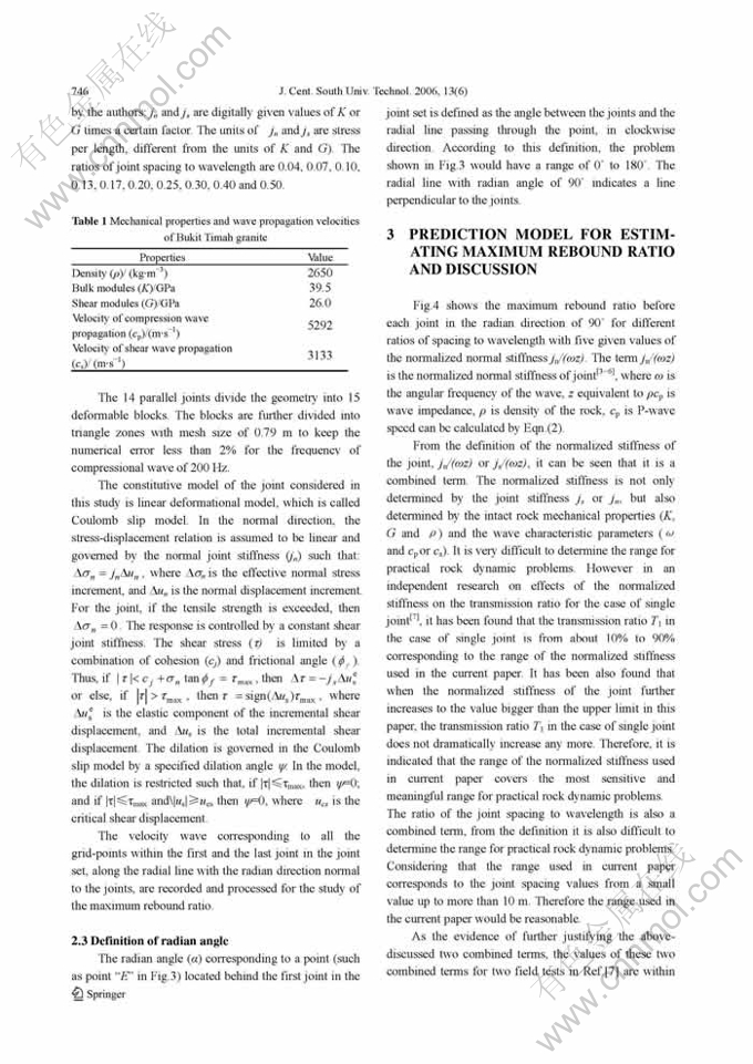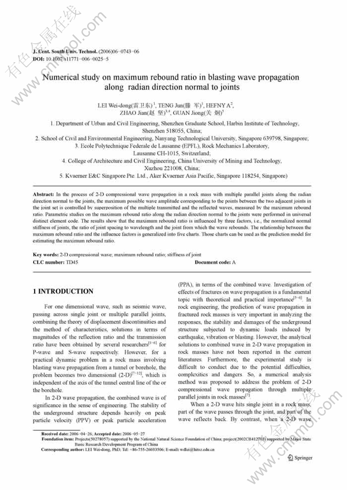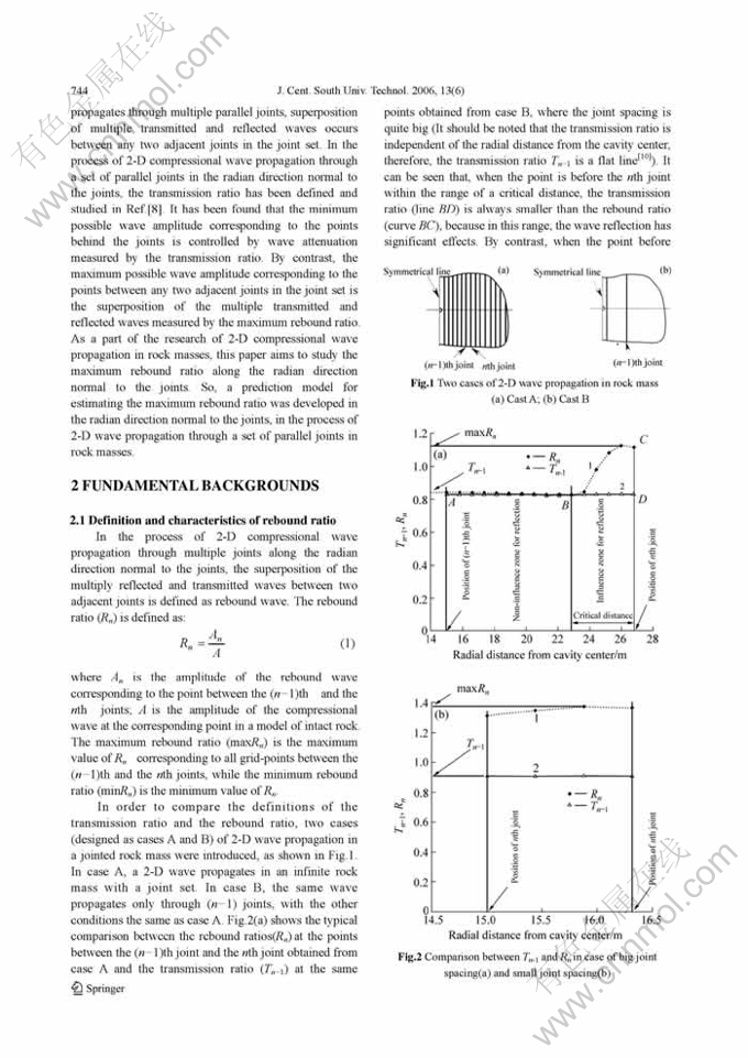 Key words:2-D compressional wave;maximum rebound ratio;stiffness of joint