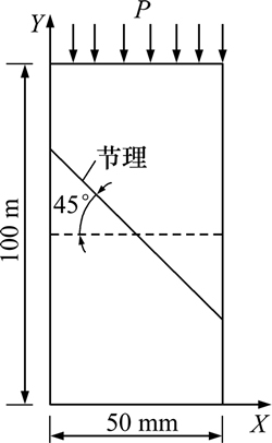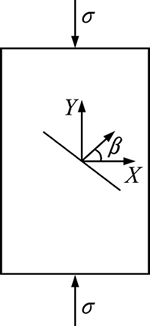 假设试件内存在一条宏观节理,如图5所示,那么它将对岩体产生各向异性损伤,这里采用式(11)计算其损伤张量。外裂隙的外法线方向为n=[