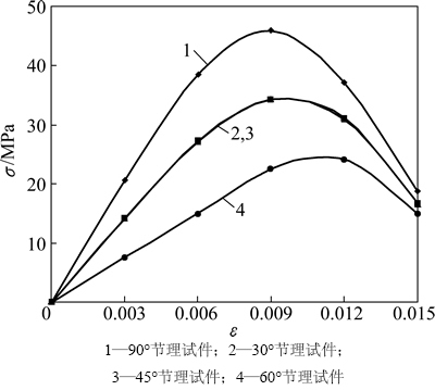 Fig. 7 Stress-strain curves of samples with different joint dip angles