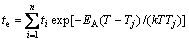 式中:EA为扩散激活能;ti是tj在温度Ti的等效时间;k为玻尔兹曼常数。将所有台阶在此温度的等效时间相加得到: