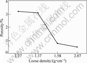 Fig.2 Influence of loose density of powder on porosity ratio