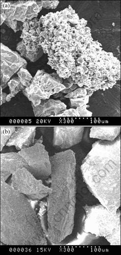 Fig.3 Appearance of powder particles with different loose densities: (a) 1.27 g/cm3; (b) 2.07 g/cm3