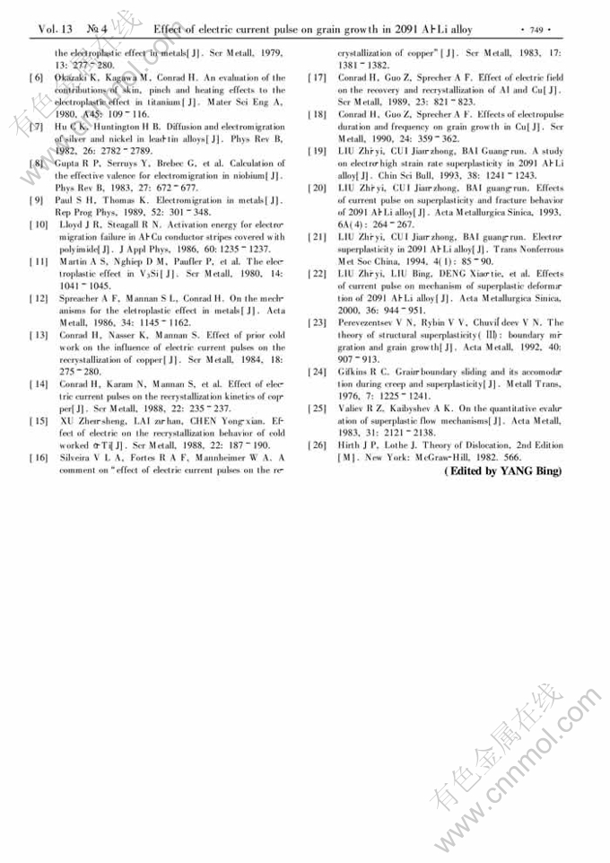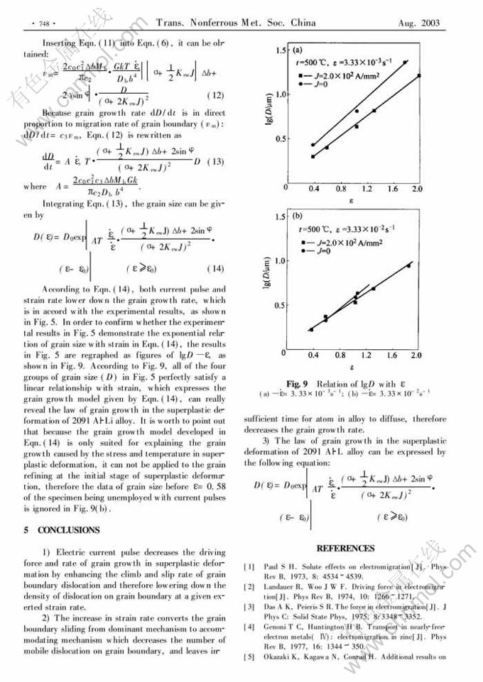 Key words:Al-Li alloy; grain growth; current pulse; superplastic; deformation