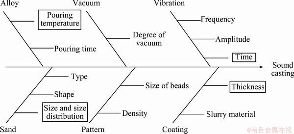 Fig. 2 Ishikawa diagram for determining factors affecting quality of cast samples