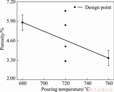 Fig. 8 Effect of pouring temperature on porosity of cast sample