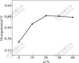 Fig.7 Effect of volume fraction of hydrogen inhibitor on overpotential of hydrogen evolution