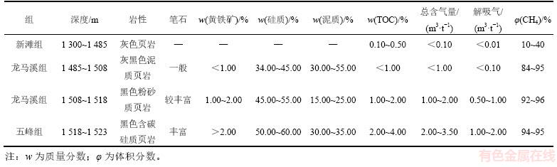 Table 3 Gas-bearing characteristic of Wufeng—Longmaxi Formation in South China