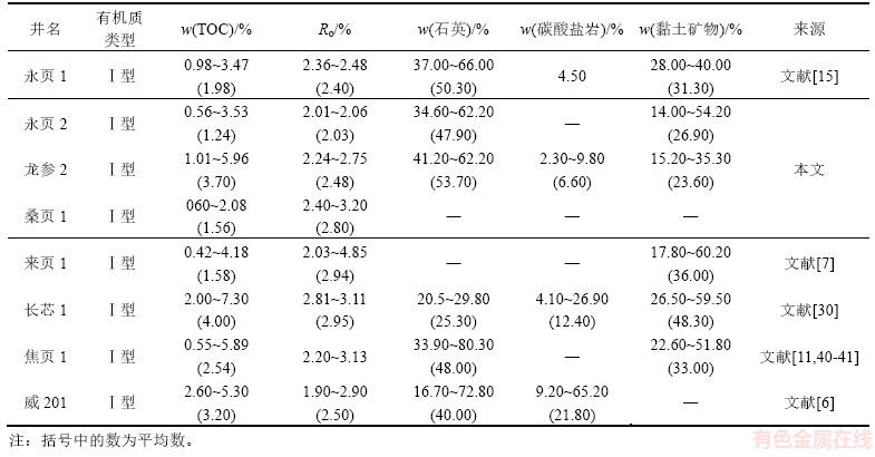 Table 2 Geological characteristic comparison of Wufeng—Longmaxi Formation in South China