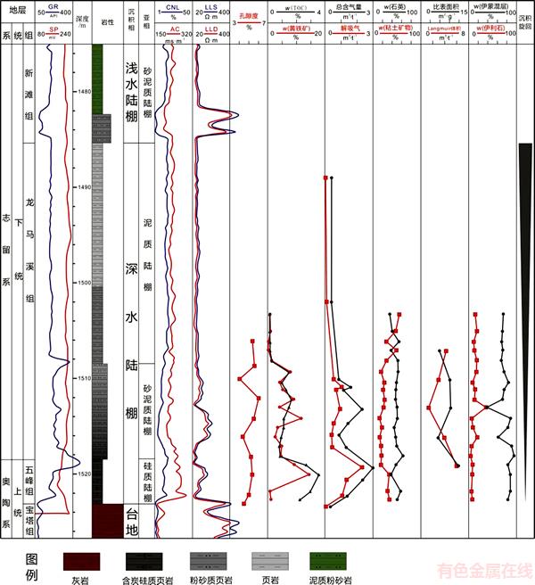 表1 永页2井五峰组—龙马溪组纵向地质特征