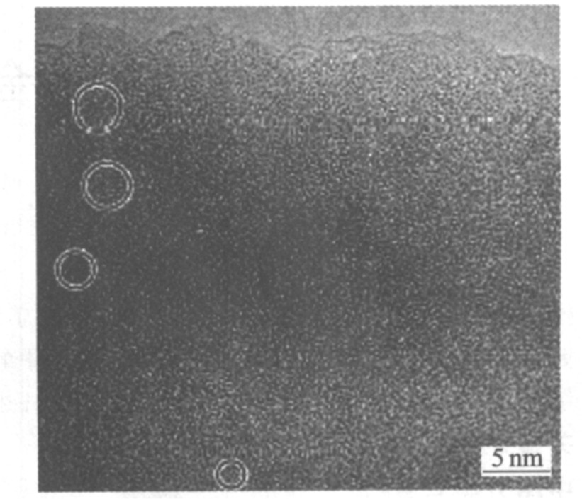 。 由于氧在锆基非晶合金晶化时能稳定正二十面体相, 吸入氧后锆基合金的玻璃形成能力提高, 从而导致准晶化。 钯在与锆合金化后, 使非晶稳定, 正二十面体簇也稳定。 在Zr-Pd二元非晶合金中发现纳米准晶相。