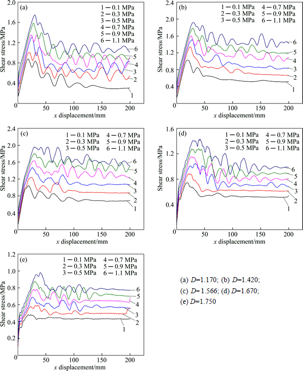 Fig. 6 Relationship between shear stress and displacement under different normal stress conditions