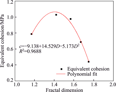 2) The relationship between the fractal dimension and the equivalent cohesion can be fitted well with a quadratic function.