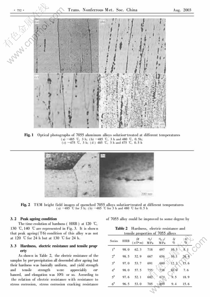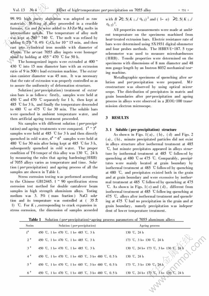 Key words:7055 aluminum alloy; stress corrosion; precipitation; solution