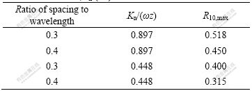 Table 4 R10,max for ratios of spacing to wavelength of 0.3 and 0.4, kn/(ωz) of 0.897 and 0.448