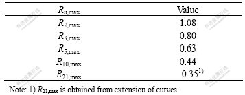 From Fig.2, it can be seen that the 1st, 2nd, 3rd, 4th and 5th monitoring point in Mandai test is located before the 2nd, 3rd, 5th, 10th and 21st joint, respectively, from the boundary of the borehole. In this part, several maximum rebound ratios, R2,max, R3,max,R5,max, R10,max and R21,max are estimated based on the curves as shown in Figs.3(a)-(e) in Ref.[2]. Among these maximum rebound ratios, the procedure of estimating R10,max is introduced in detail.