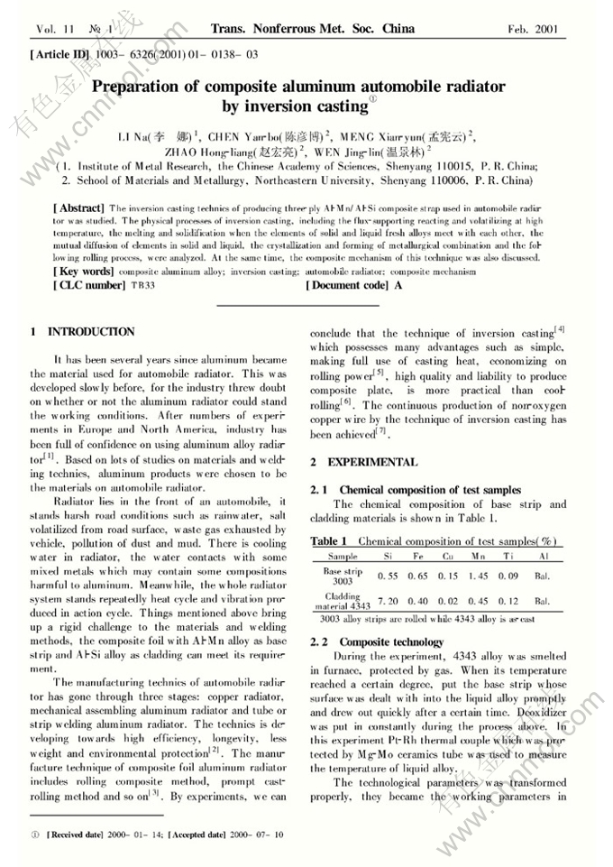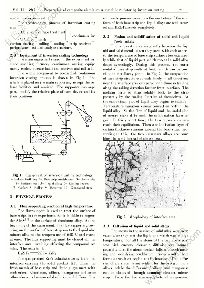 Key words:composite aluminum alloy; inversion casting; automobile radiator; composite mechanism
