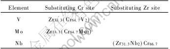 1) Rietveld模拟计算和X射线衍射实验结果表明: 合金元素V和Mo占据ZrCr2 Laves相金属间化合物中Cr原子的晶格位置, 而Nb则占据Zr原子的晶格。