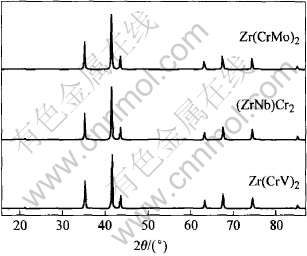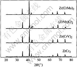 图1 不同成分ZrCr2 Laves相的X射线衍射谱