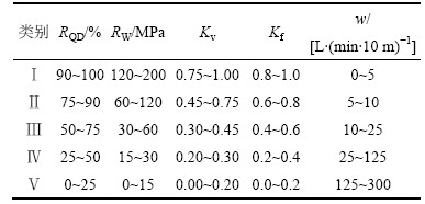 对照文献[4]中的规范及国家标准,根据5项指标,将岩体质量分为5个等级,如表1所示。