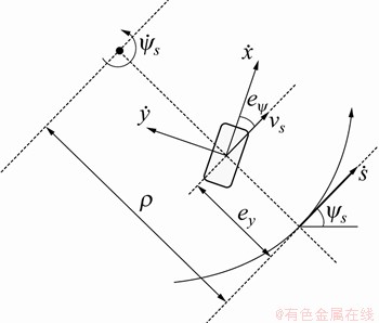 where the speed along the direction of the reference path is vs; the curvature radius is ρ; the reference path heading angle is ψs, and its time derivative is
