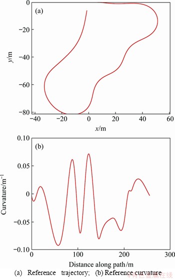 For minimum-time trajectory generation over a predefined path, the problem can be transformed into generating a time-optimal longitudinal speed profile considering vehicle dynamics. In Ref. [31], valid speed regions were determined using vehicle dynamics based on a transformation method introduced by BOBROW et al [33], in which the prespecified trajectory was reparameterized using the distance travelled along the path and the goal was then converted to generate feasible speed profile along the newly parameterized path within the maximum longitudinal velocity regions. Recent research observed that the velocity profile was convex for a six-degree-of-freedom robotic manipulator using this transformation. Therefore, the time-optimal problem can be dealt with many convex optimization tools, which significantly improved the flexibility and efficiency of this formulation and provided guarantees on basic optimality [34, 35]. In addition to convex formulations, alternative methods have also been investigated, for instance, differentially flat formulations which allow considering a broader type of vehicle models, but lose the advantages leveraged from convex optimization [36].