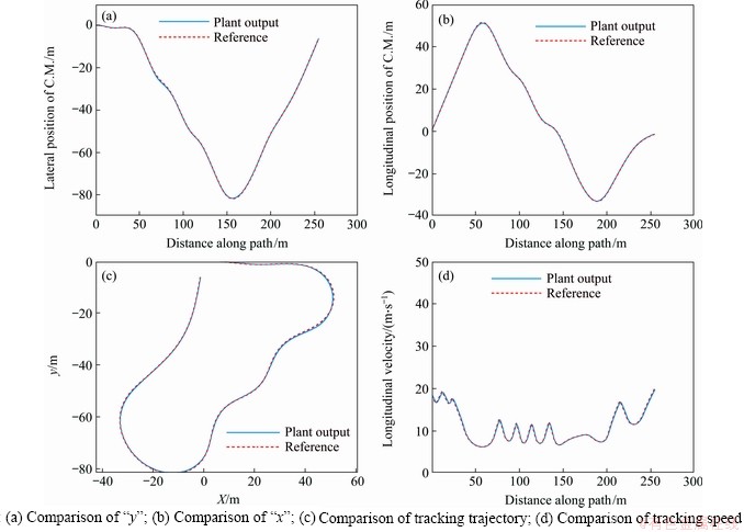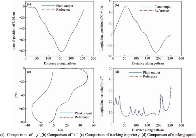 1) Tracking performances of “y”, “x”, the trajectory and the longitudinal speed are given in Figure 13.