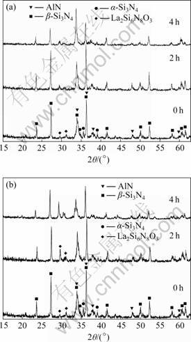 Fig.1 XRD patterns of Si3N4-AlN composite ceramics with different annealing times: (a) Annealed at 1 850 °C; (b) Annealed at 1 450 °C