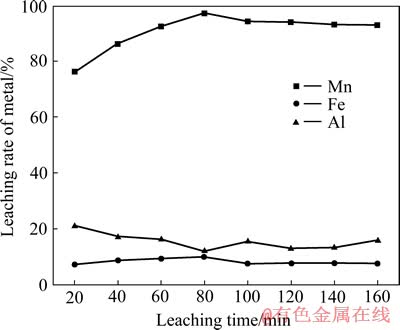 Fig. 8 Effect of leaching time on leaching rate of metals