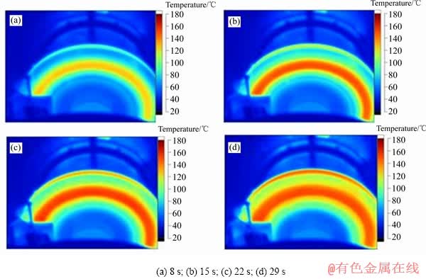 Fig. 3 Experimental results of temperature field on brake disc surface at different braking time