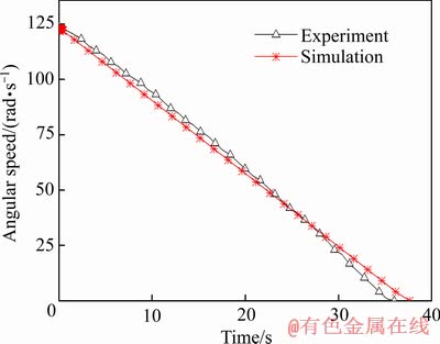图5 试验和数值模拟的制动盘角速度时间历程曲线
