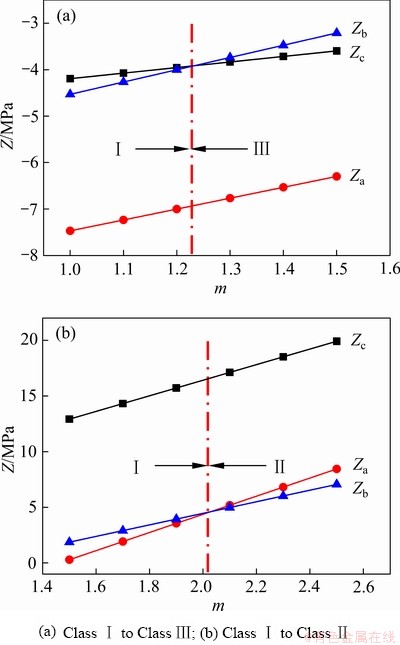 由受力分析可知,顶板下部比上部更容易破坏,上部判定值Za通常要小于上部判定值Zc。Za、Zb、Zc的大小排序存在以下3种情况:Za<Zc<Zc、Zb<Za<Zc、Za<Zc<Zb,对应的可能变形破坏类型分别设定为Ⅰ类、Ⅱ类、Ⅲ类等。