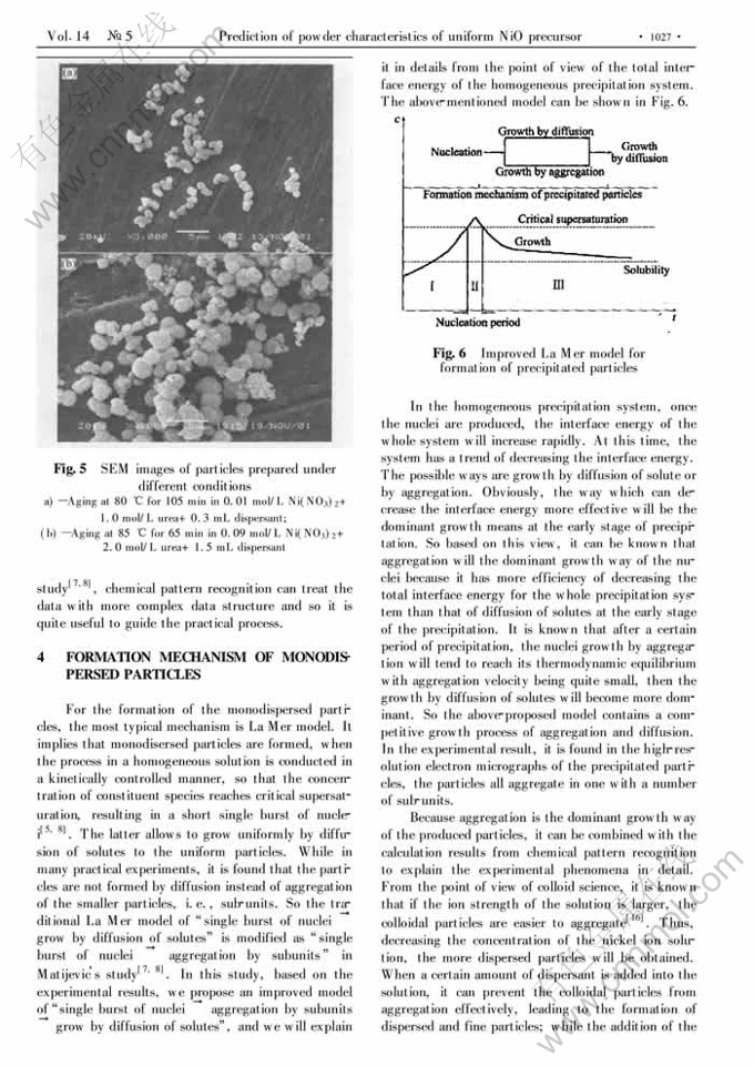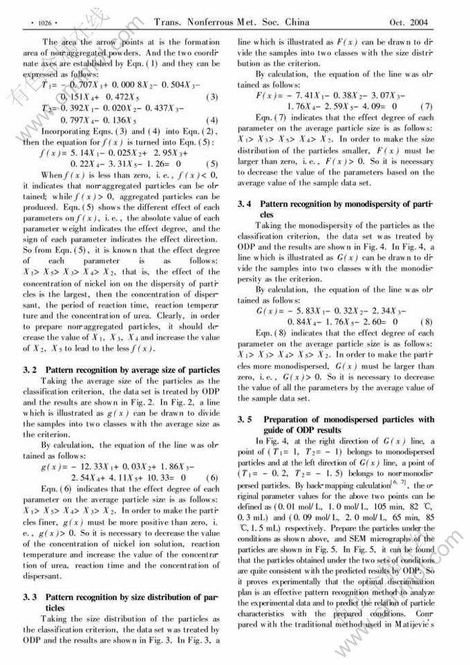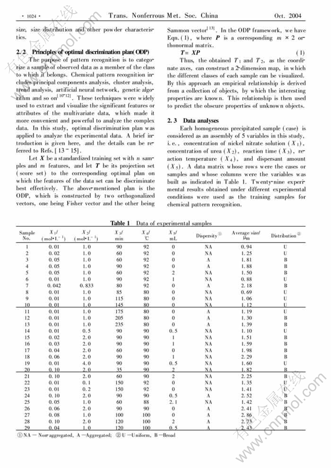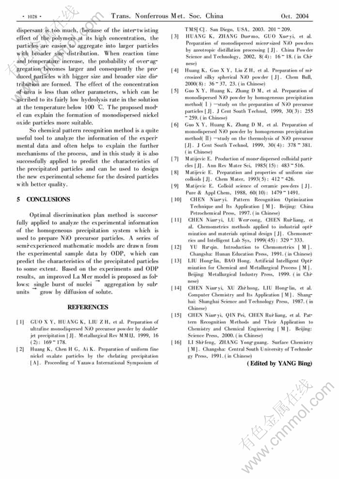 Key words:chemical pattern discrimination; optimization and prediction; NiO precursor particle; homogeneous precipitation