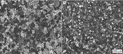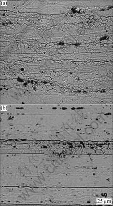 Fig.4 Optical microstructures of studied alloys with T6 temper: (a) Al-Zn-Mg-Cu-Zr; (b) Al-Zn-Mg-Cu-Zr-Cr-Nb