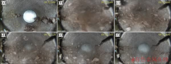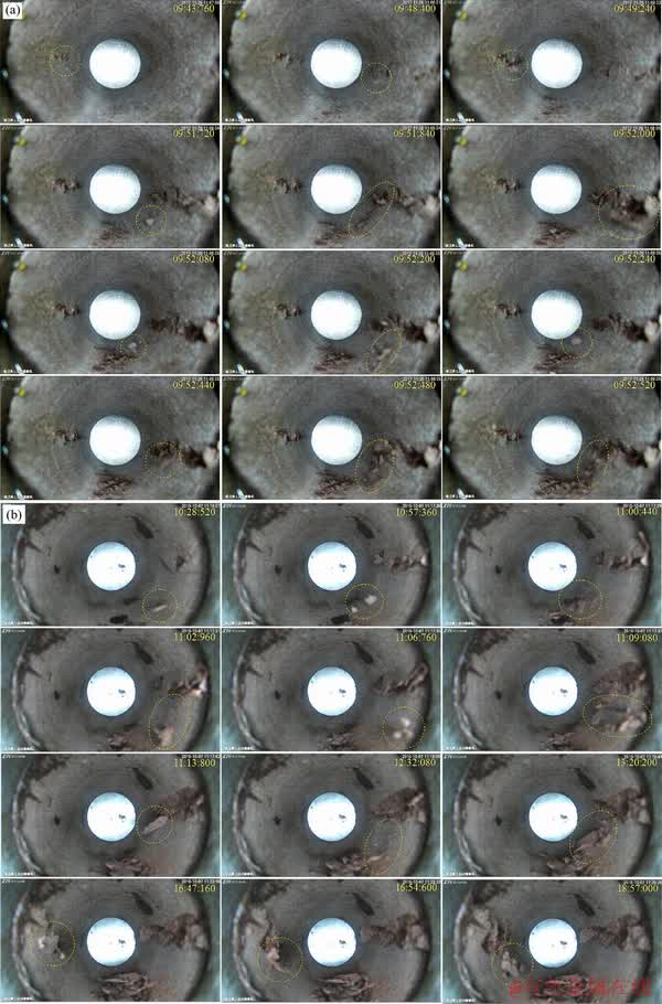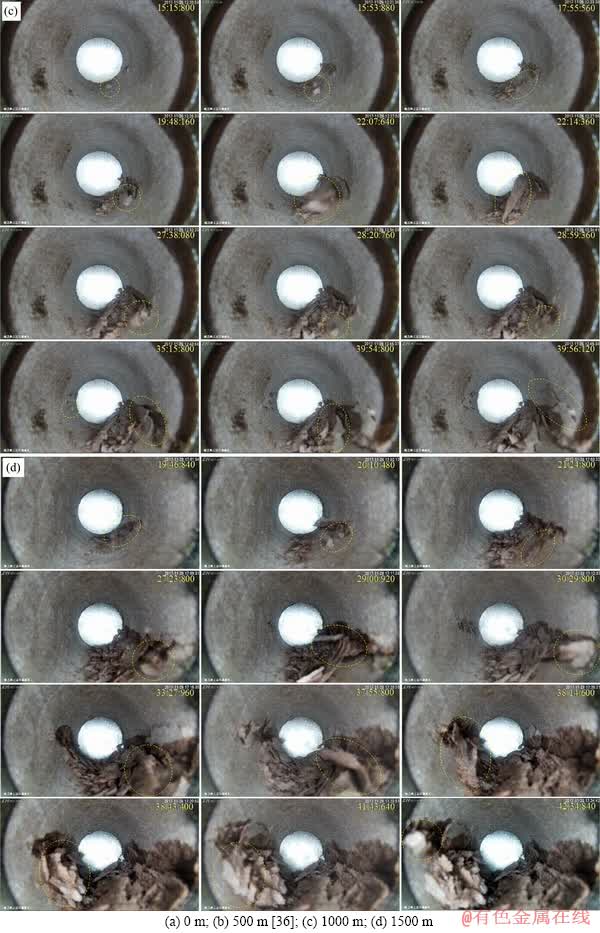 Figure 9 Failure process along sidewalls of specimens representing different depths (digits in the picture are time, min:s:ms):
