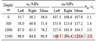Table 2 Stress characteristics of sidewalls initial failure at different depths