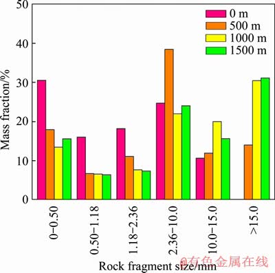 Figure 11 Size distribution characteristics of rock fragments at different depths