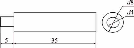 Mild annealed Ti-6Al-4V was chosen as the substrate material, which consists of 3.5%-4.5% V, 5.5%-6.75% Al, 0.4% Fe, 0.1% C (mass fraction), and balance titanium. Titanium alloy flats and cylindrical pins were procured from Noble Engineering Private Limited, Chennai, India, and machined to suitable sizes for tribological testing. Cylindrical pins made from mild annealed Ti-6Al-4V were first machined to a uniform diameter of 8 mm for a length of 40 mm. Further, the diameter of one end of the specimen was reduced to (4±0.05) mm for a length of (5±0.05) mm and preferred as the target end for the pin on disc experiment. Figure 1 shows the schematic diagram of the stepped cylindrical pin made from Ti-6Al-4V alloy.
