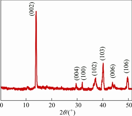 To analyze the coating structure, HRXRD (PANalytical X’Pert Pro MRD) with a Cu-target as X-ray source with a four crystal Ge (220) monochromator in the incident beam optics was used. The XRD pattern was recorded using Cu Kα radiation (α=1.5406 ) generated at 45 kV and 30 mA, scans were performed with a 2θ range of 0°-50° with 0.0197° step at a scan speed of 300 s/step. The XRD pattern presented in Fig. 8, shows the diffraction peaks corresponding to (0 0 2), (0 0 4), (1 0 0), (1 0 2), (1 0 3), (0 0 6), (1 0 5), and (1 1 0) planes which confirmed that the MoS2 solid lubricant coating was prepared successfully. All diffraction peaks belonging to MoS2 can be indexed to hexagonal close packed structure. These findings are accordance with the experimental results published in Ref. [18].