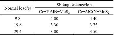 Table 1 Comparison of total sliding distance between MoS2- coated TiAlN and AlCrN coating