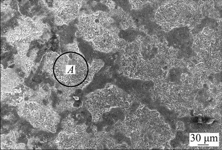The morphology of textured worn out pin surface was observed by SEM and its micrograph is shown in Fig. 14. Unlike the hard coated textured surfaces either with or without interlayer, almost all the dimples were filled with the coating composition and also the surface was smooth and free from any loose wear debris. Further, the EDX analysis was performed at the dimple region marked in Fig. 14.