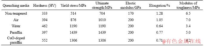 Table 2 Mechanical properties of non-tempered and heat-treated samples at different cooling media