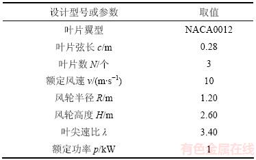 表1 垂直轴风力发电机的相关参数