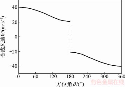 图8 合成风速与叶片方位角的关系