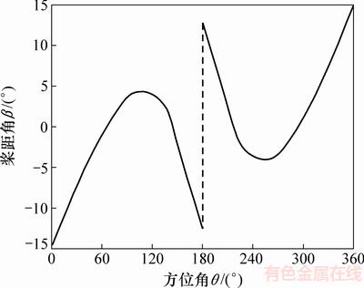 3) 考虑到特殊方位角下叶片升力沿风轮旋转的径向,为了减小阻力矩,规定0°和180°方位角的桨距角为0°,进一步明确了叶片变桨距变化规律。
