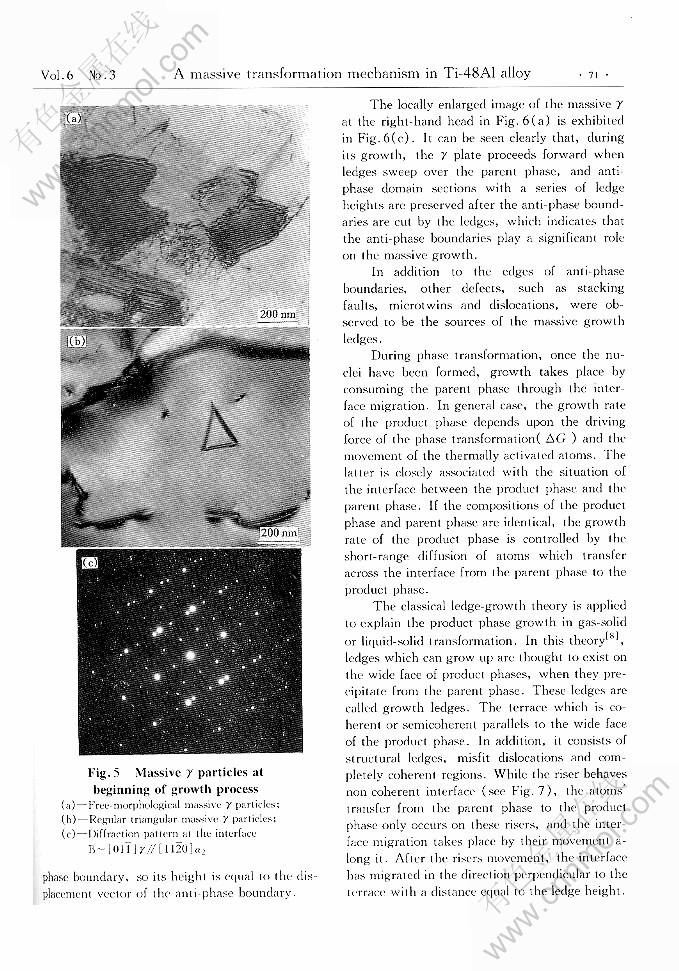 Key words:TiAl alloy; massive transformation; diffusion controlled ledge growth mechanism