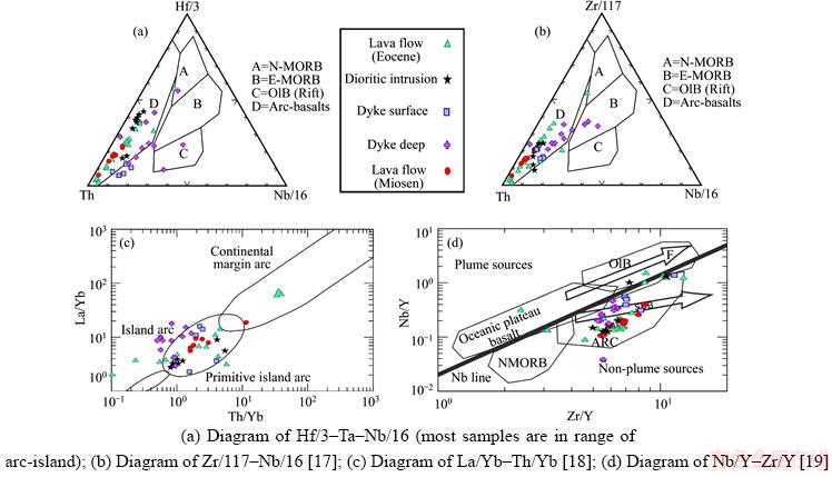 [16] WOOD D A. The application of a Th-Hf-Ta diagram to problem of tectonomagmatic classification and to establishing the nature of crustal contamination of basaltic lavas of the British tertiary volcanic province [J]. Earth and Planetary Science Letters, 1980, 50(1): 11–30.
