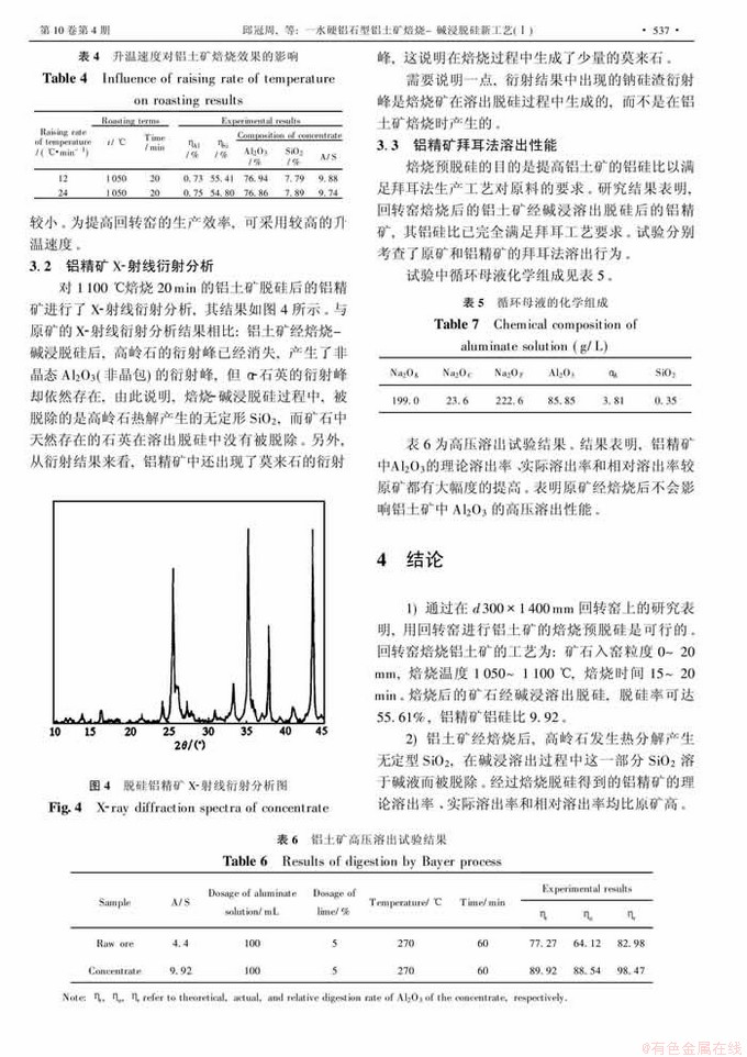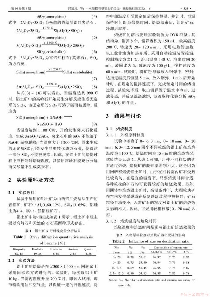 Key words:diasporic bauxite; chemical processing; desiliconization